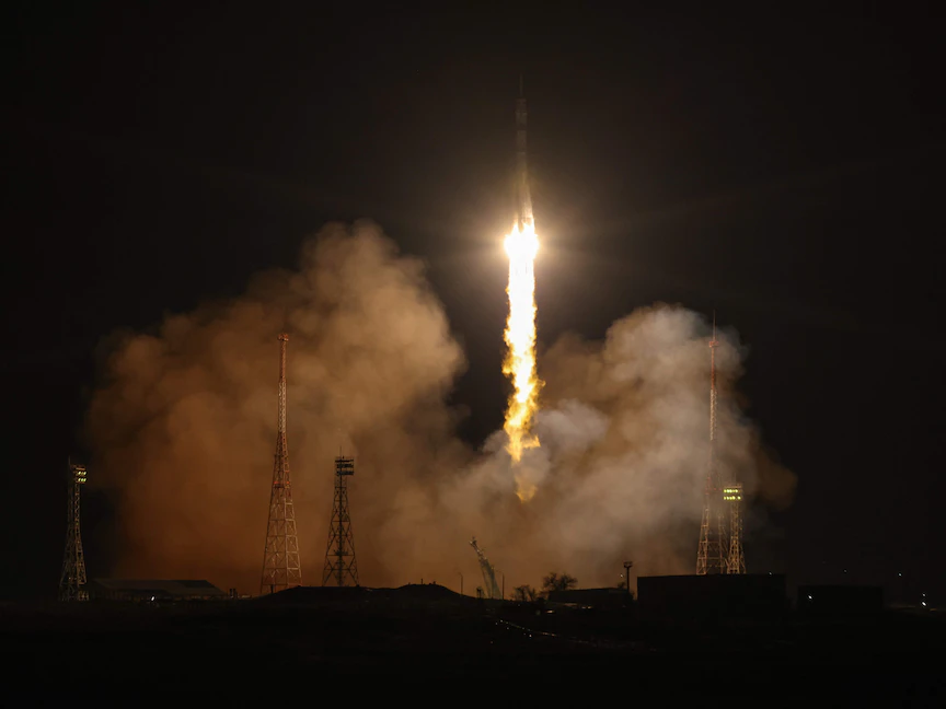 أطلقت روسيا مركبة فضائية من نوع "سويوز" من كازاخستان إلى محطة الفضاء الدولية، بهدف إعادة رائدَي فضاء روسيَّين، وآخر أميركي، عالقين في المحطة بسبب حادثة تسرب تعرضت لها مركبتهم.