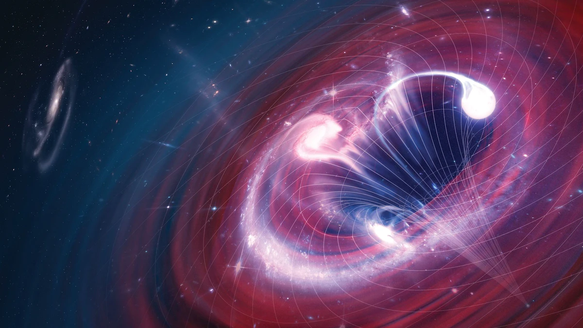 وبحسب نظريتهم، إنّ مجرّتين ربما اندمجت قبل نحو 50 مليون سنة، مما تسبّب في دوران ثقبين أسودين هائلين حول بعضهما.