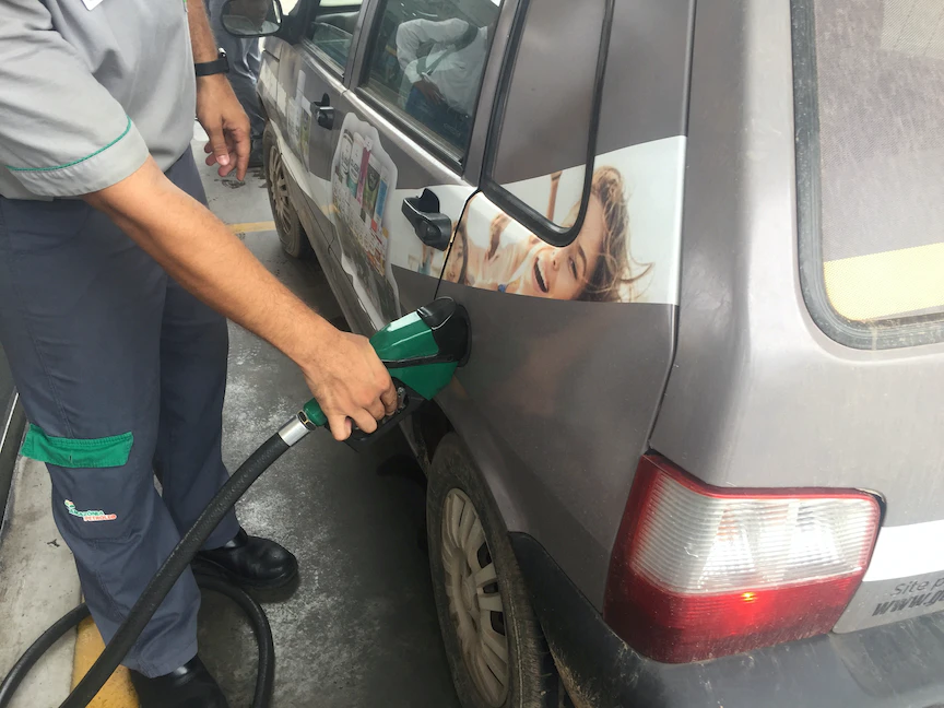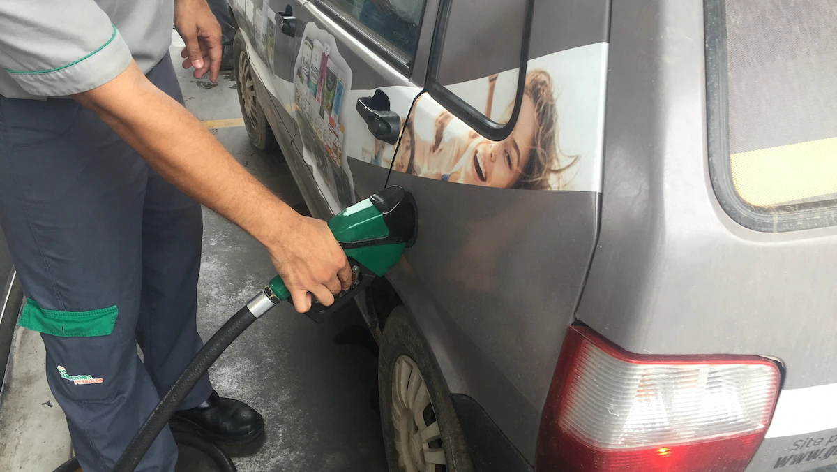 عامل بمحطة وقود يملأ خزان سيارة بالوقود في مدينة كويابا، البرازيل. 2 أكتوبر 2019 - REUTERS