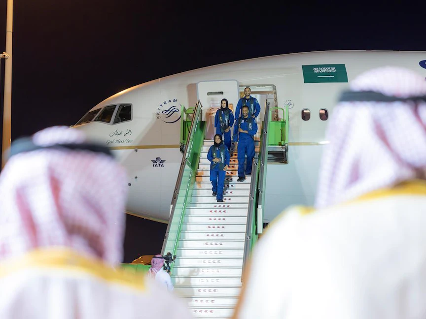 وصل رواد الفضاء السعوديون، ريانة برناوي، وعلي القرني، ومريم فردوس، وعلي الغامدي، الجمعة، إلى مطار الملك خالد الدولي بالرياض، بعد نجاح المهمة العلمية في محطة الفضاء الدولية.