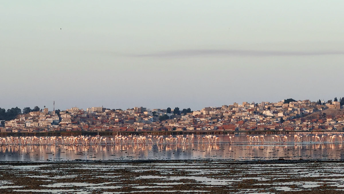 حتى بحيرة "السيجومي" القريبة، حيث كانت المياه دائماً متوفرة بشكل أكثر، أضحت نصف فارغة، وتلقي أسراب طيور الفلامنجو مسحة وردية شاحبة عبر بقعة من الأراضي الرطبة، بينما ترتفع أحياء تونس على تل خلفها.