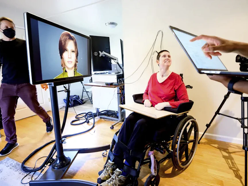 الفريق البحثي صمم واجهة دماغية حاسوبية، تسمح لنظام ذكاء اصطناعي لغوي بتحويل الإشارات الدماغية التي ينتجها مخ المريضة خلال محاولتها النطق، إلى كلمات تظهر أمامها على الشاشة، ومن ثم يبدأ في تخمين الكلمات الصحيحة ويعرضها على الشاشة ويقرأها بصوت مسموع، بمعدل خطأ كلمة واحدة من كل 4 كلمات.
