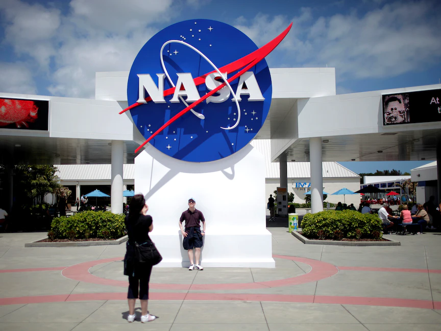 شعار وكالة "ناسا" في مركز كينيدي للفضاء - REUTERS