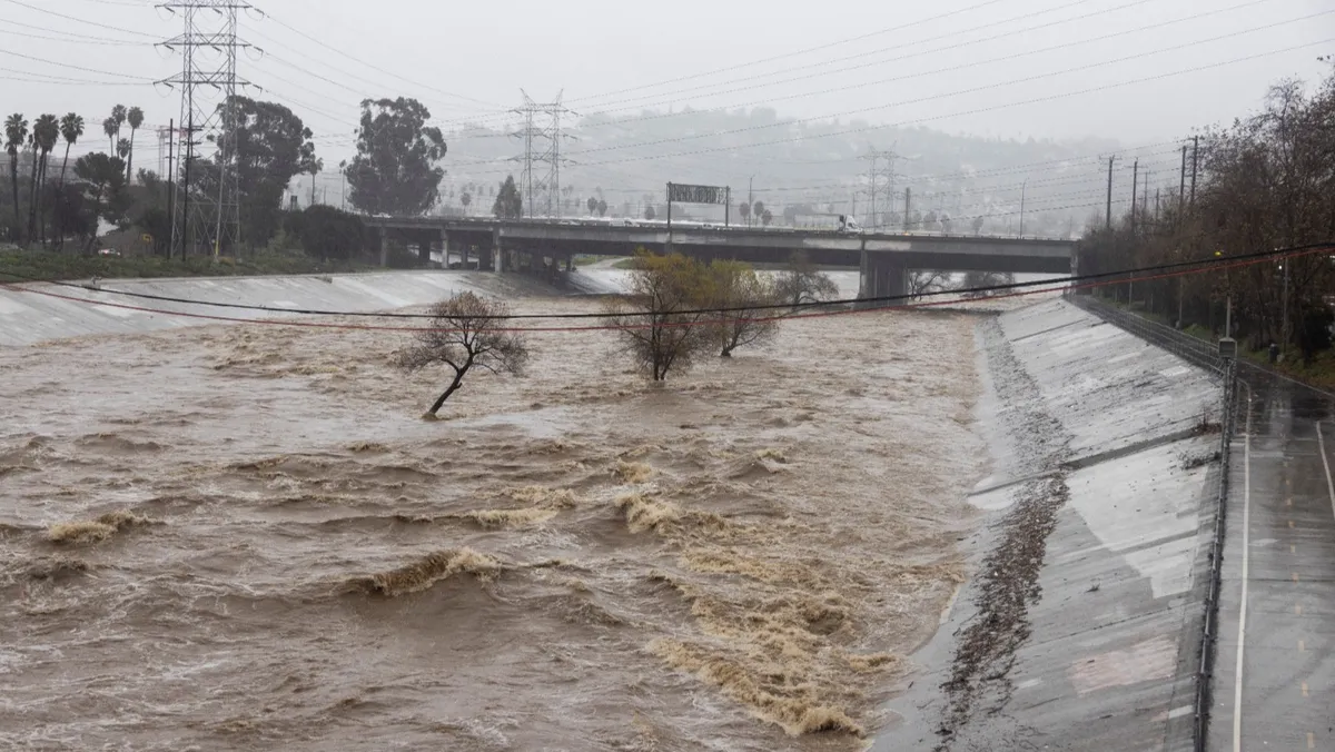 نهر لوس أنجلوس أثناء هطول أمطار غزيرة في كاليفورنيا بالولايات المتحدة. 5 فبراير 2024 - Reuters