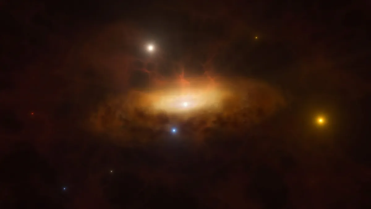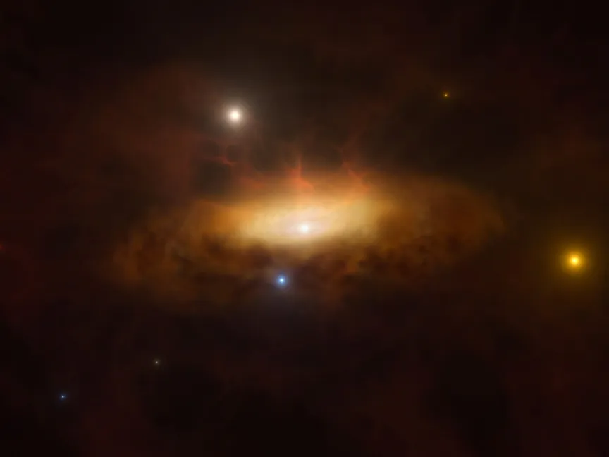 وقد تكون البيئة المحيطة بالثقب الأسود الهائل استثنائية العنف لأنها تمزق النجوم وتبتلع أي مادة أخرى تطالها جاذبيتها.