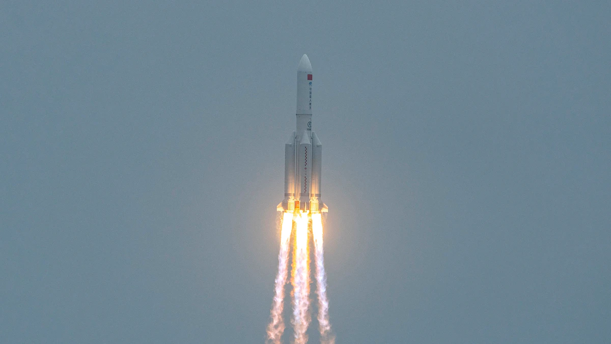 وانطلق الصاروخ (لونغ مارش 5 بي) من جزيرة هاينان الصينية في الـ29 من أبريل الماضي، حاملاً على متنه مركبة "تيانهي" غير المأهولة، والتي كانت تحمل ما سيصبح أماكن للمعيشة في محطة فضائية صينية دائمة.