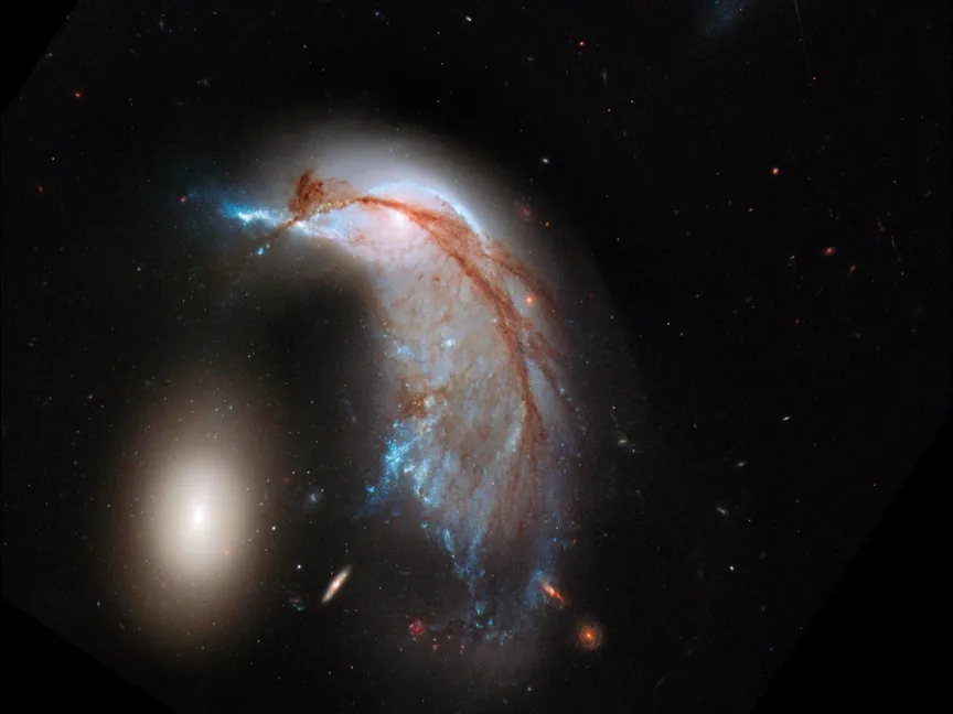 وتقول ناسا إن تفاعلهما معاً بدأ منذ ما بين 25 و75 مليون سنة، ومن المتوقع أن يصبحا مجرة واحدة بعد مئات الملايين من السنين من الآن.