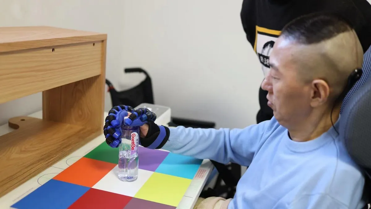 واستطاع أحد المرضى باستخدام شريحة "نيو" الإمساك بزجاجة مياه عبر إرسال إشارات دماغية إلى طرف اصطناعي يتمثل في قفاز ذكي.