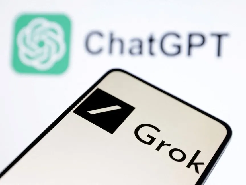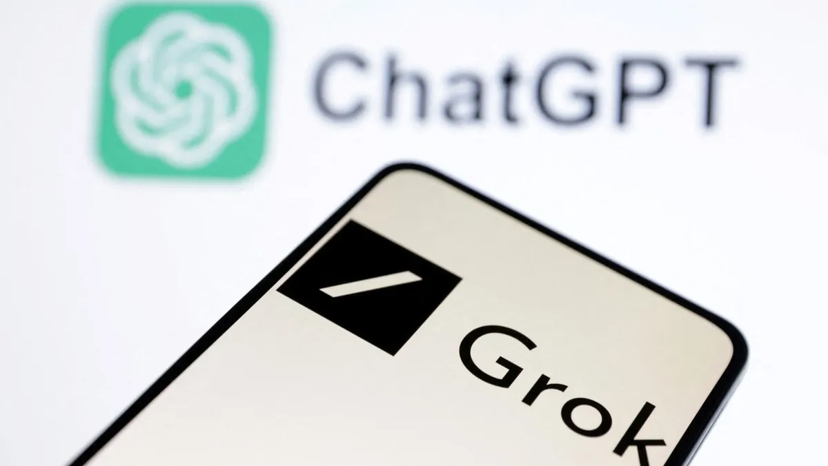شعارا روبوت المحادثة Grok3 ومنافسه ChatGPT كما يظهران في صورة توضيحية. 11 مارس 2024 - REUTERS