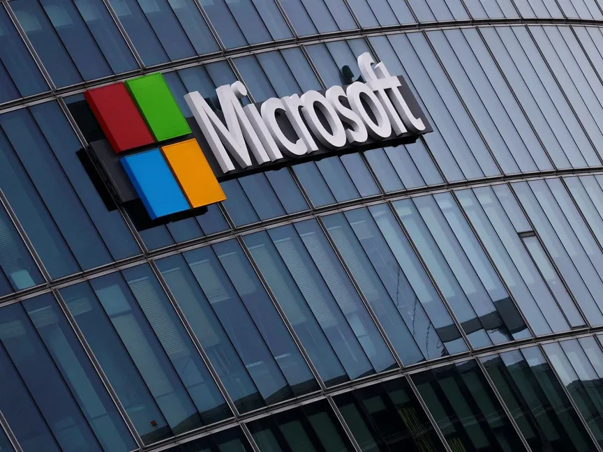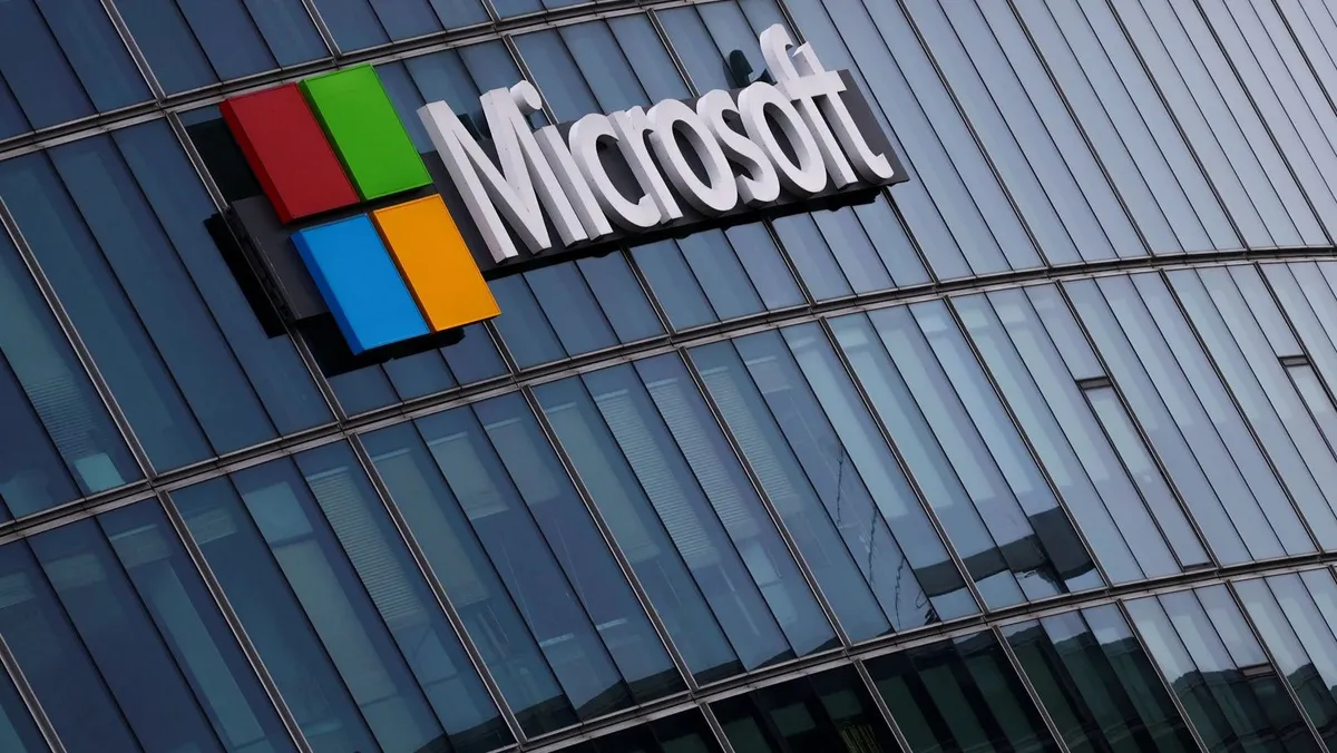 شعار مايكروسوفت على أحد مقرات الشركة قرب باريس. 13 مارس 2025 - REUTERS