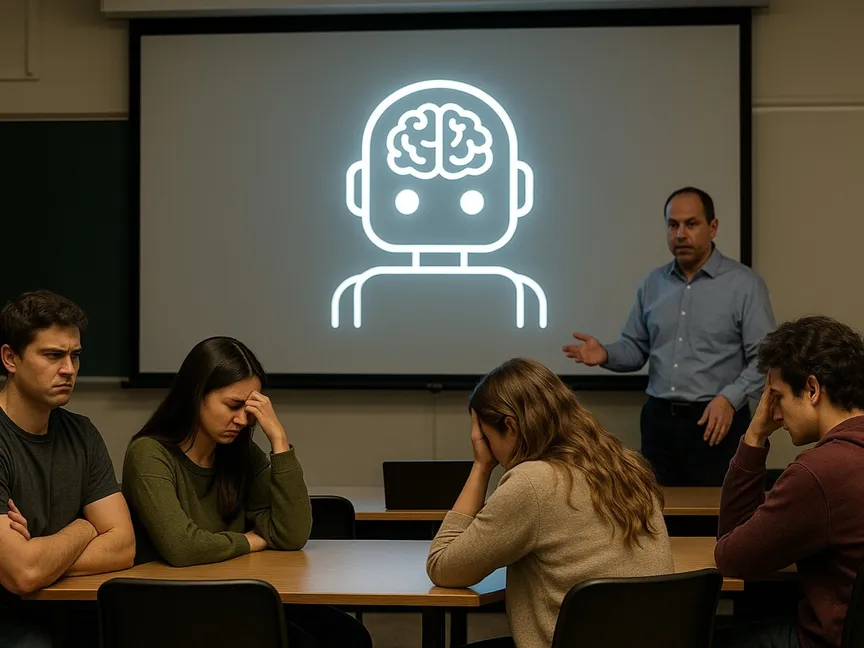 وردّ المحاضر بابتسامة متوترة قائلًا: "أقدّر صراحتكم…" ثم غيّر الموضوع متحدثًا عن مادة تعليمية أخرى أعدّها، أيضًا باستخدام ChatGPT.