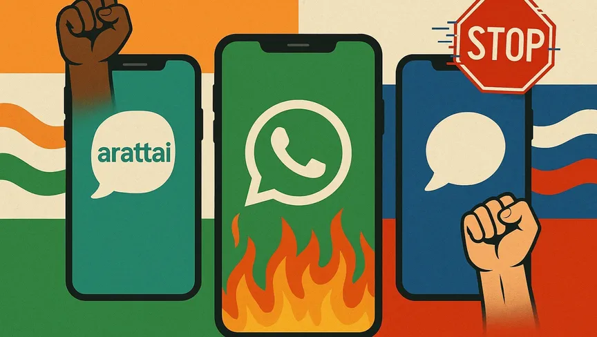 يتعرض تطبيق واتساب لضغوط متزايدة على جبهتين في آن واحد؛ ففي الهند يواجه صعود منافس محلي جديد هو تطبيق Arattai المدعوم من حكومة رئيس الوزراء ناريندرا مودي وخطابها الداعي إلى “الاكتفاء الذاتي” الرقمي في ظل توتر تجاري مع الولايات المتحدة.