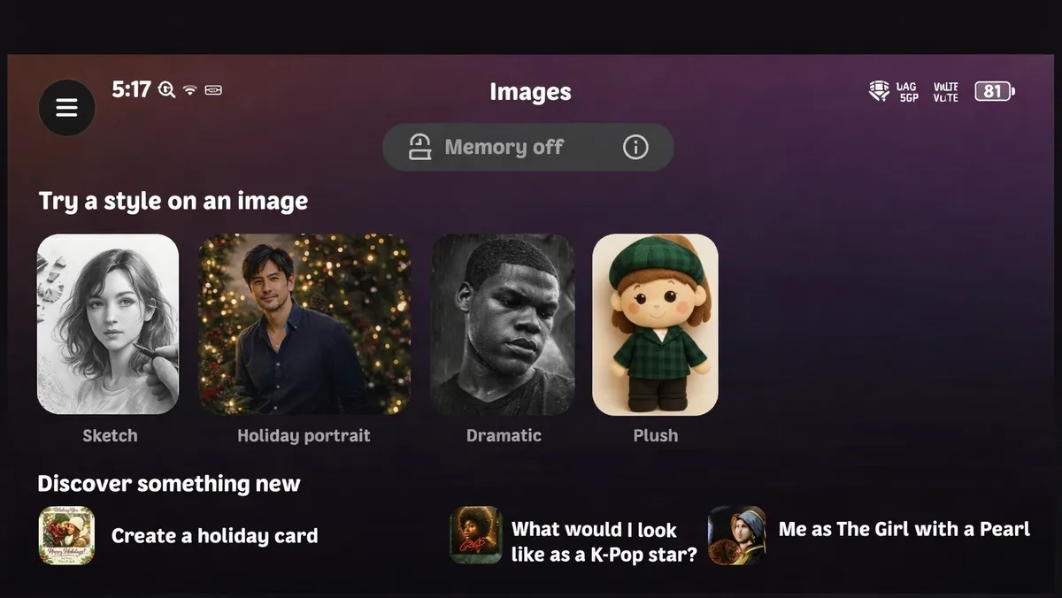 وتعمل هذه الميزة مع المفاهيم البسيطة والمعقدة على حد سواء، ويمكن تجربتها بسهولة من خلال الأنماط الجاهزة والأفكار المسبقة داخل تجربة Images الجديدة، دون الحاجة إلى كتابة أوصاف نصية مطولة.