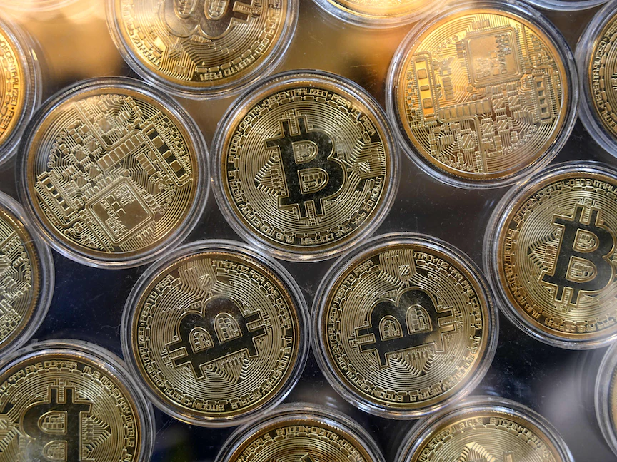 عملات معدنية تحمل علامة بيتكوين المشفرة - AFP