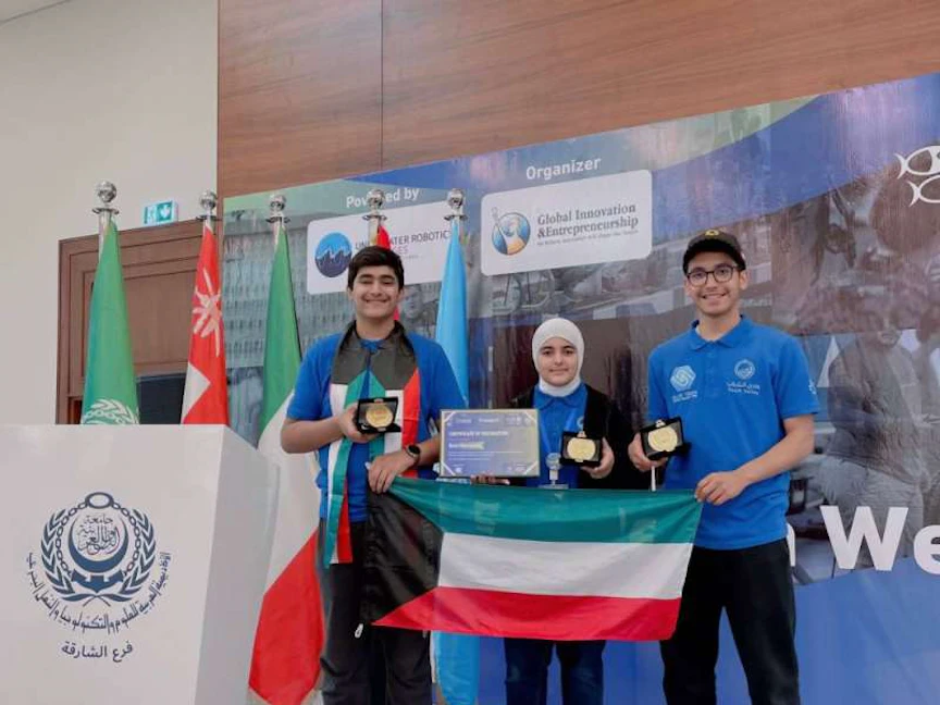 وقالت الهيئة العامة للشباب في بيان نشرته وكالة الأنباء الكويتية (كونا)، إن الطلاب حوراء ميرزا، ومحمد البحر، وطلال الحزامي، فازوا تحت إشراف مدرب الفريق محمد الظفيري ومساعدته مريم السلمان، في المسابقة التي نظمتها الأكاديمية العربية للعلوم والتكنولوجيا والنقل البحري فرع الشارقة.