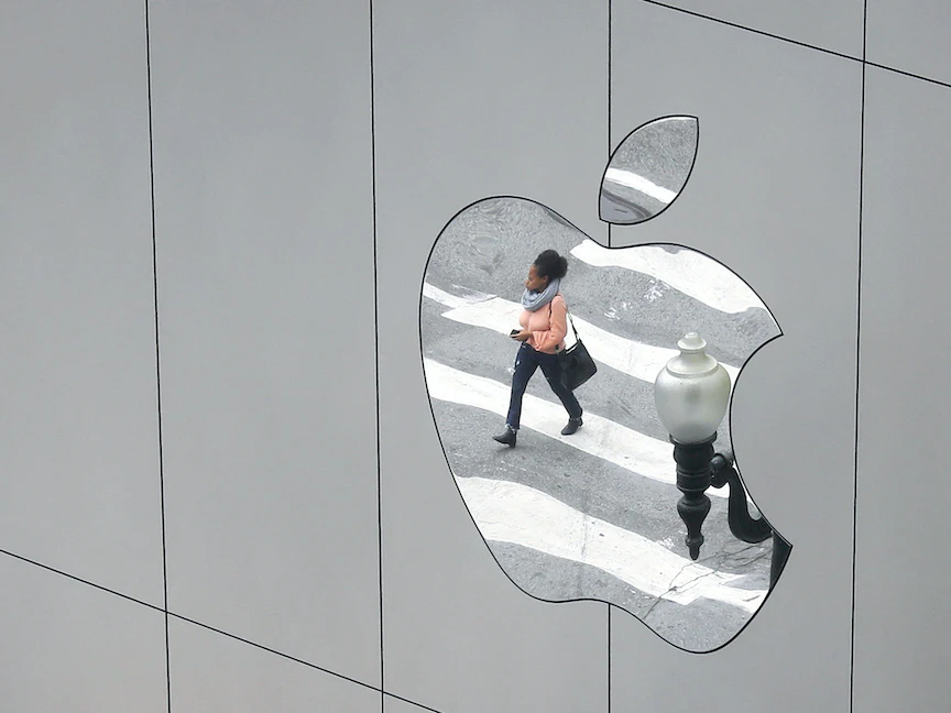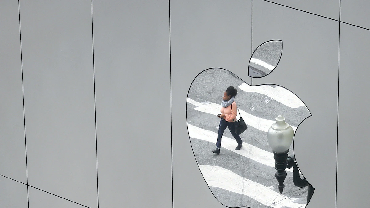 شعار "أبل" على جدران أحد متاجرها في سان فرانسيسكو الأميركية - REUTERS