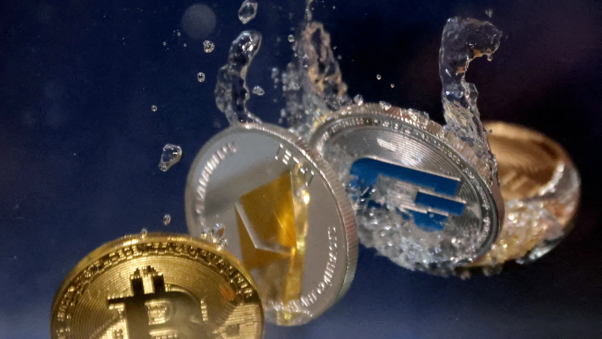 عملات معدنية تحمل شعارات بعض العملات الرقمية - REUTERS