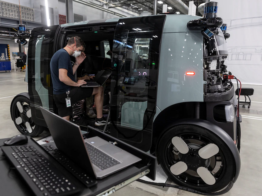 تباهت شركة "ZOOX" التابعة لمجموعة "AMAZON"، الثنين، بـ "صناعة التاريخ" عندما سيرت مركبتها ذاتية القيادة على جزء صغير من أحد الطرق العامة في ولاية كالفورنيا وعلى متنها الرئيسة التنفيذية للشركة وأحد الموظفين بدون مقود ولا دواسات تحكم.