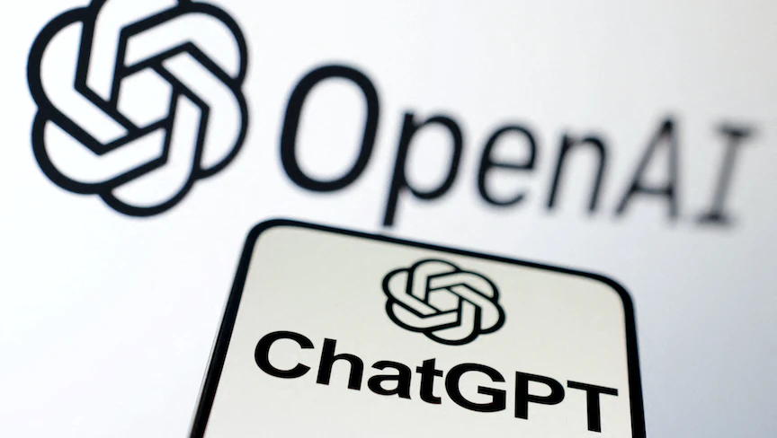 ChatGPT على هاتف ذكي أمام شعار شركة OpenAI المطورة له. 3فبراير 2023 - REUTERS