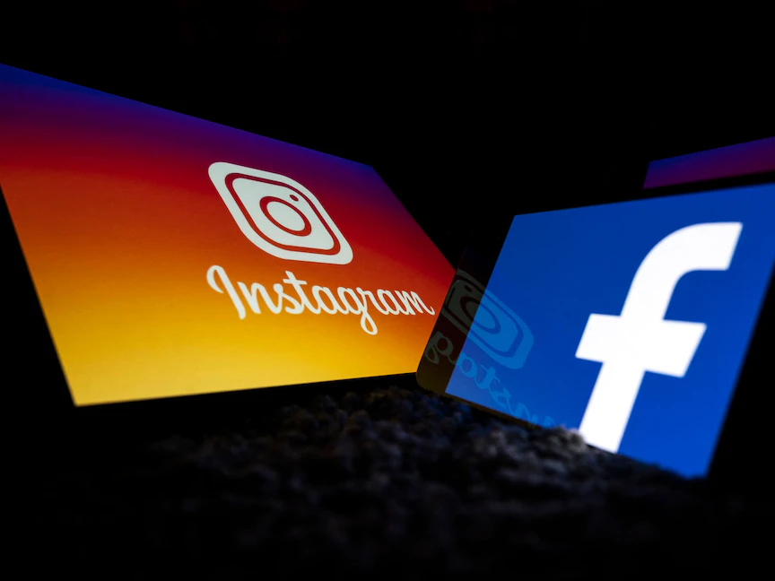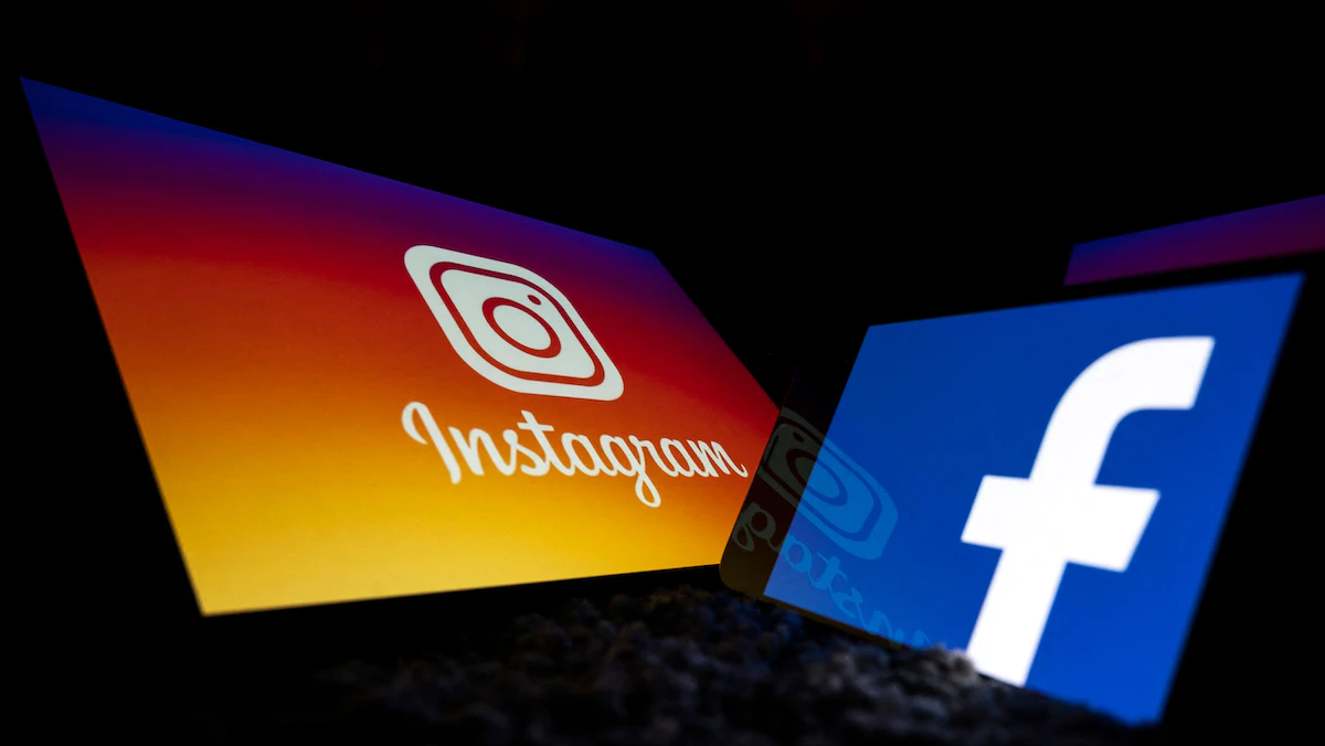 شعارا فيسبوك وإنستجرام على شاشتي جهاز لوحي وهاتف محمول - AFP