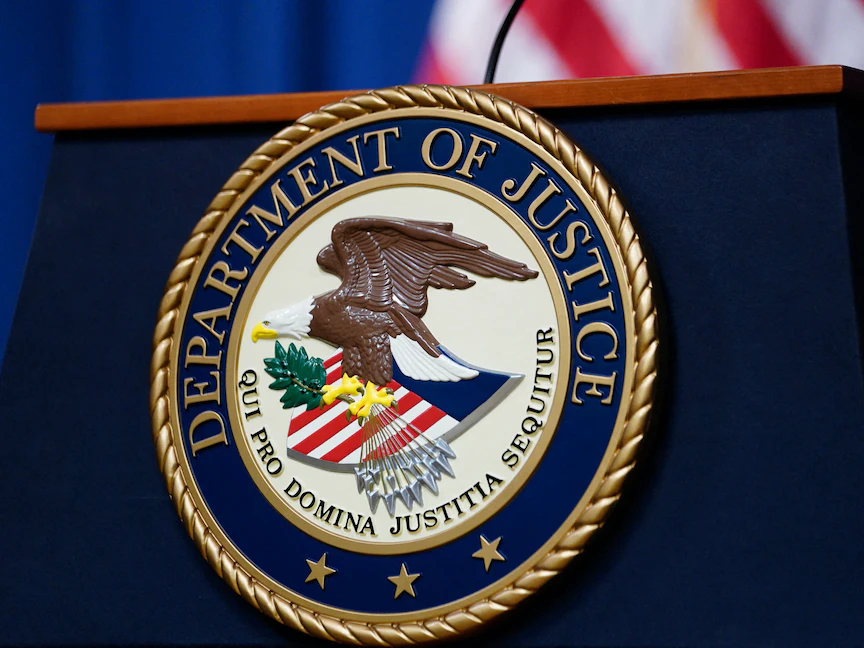 شعار وزارة العدل الأميركية يظهر في مقر الوزارة بواشنطن. 24 يناير 2023 - REUTERS