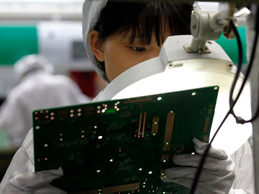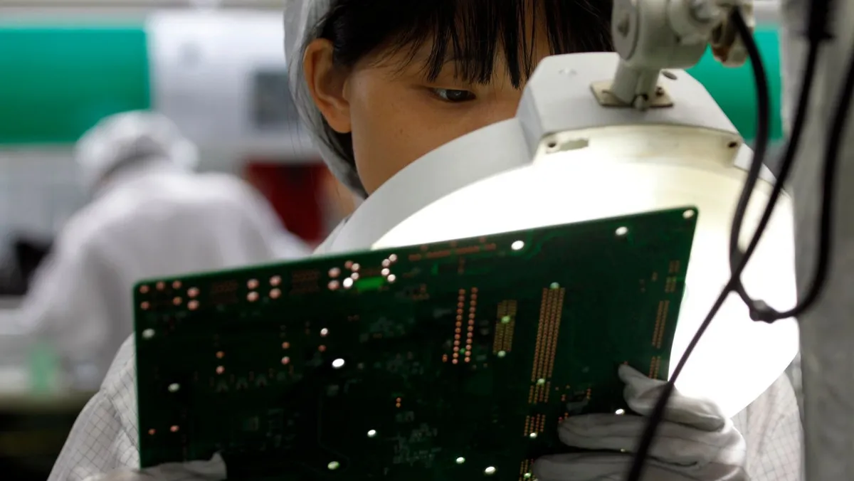 عاملة داخل أحد مصانع شركة "فوكسكون" - REUTERS