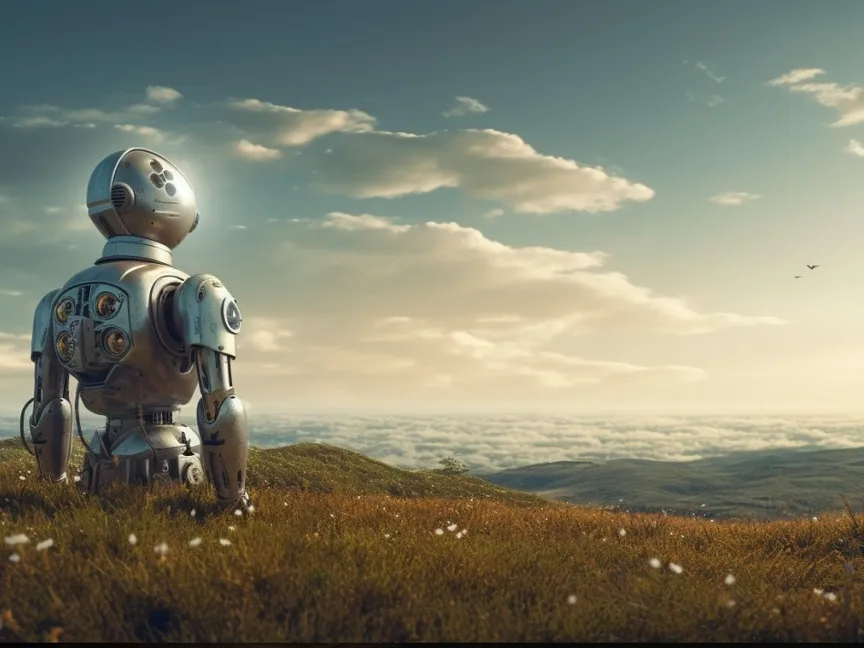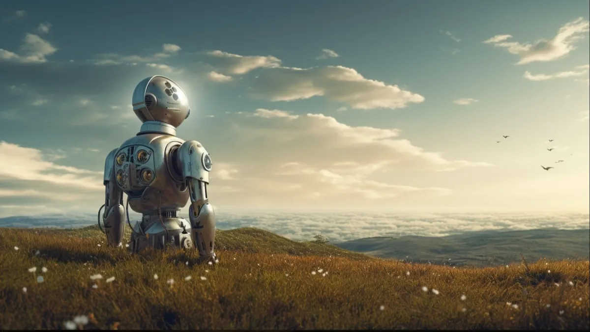 صورة أنتجتها "الشرق" بالذكاء الاصطناعي لروبوت ينظر إلى الأفق. 29 ديسمبر 2023 - Midjourney