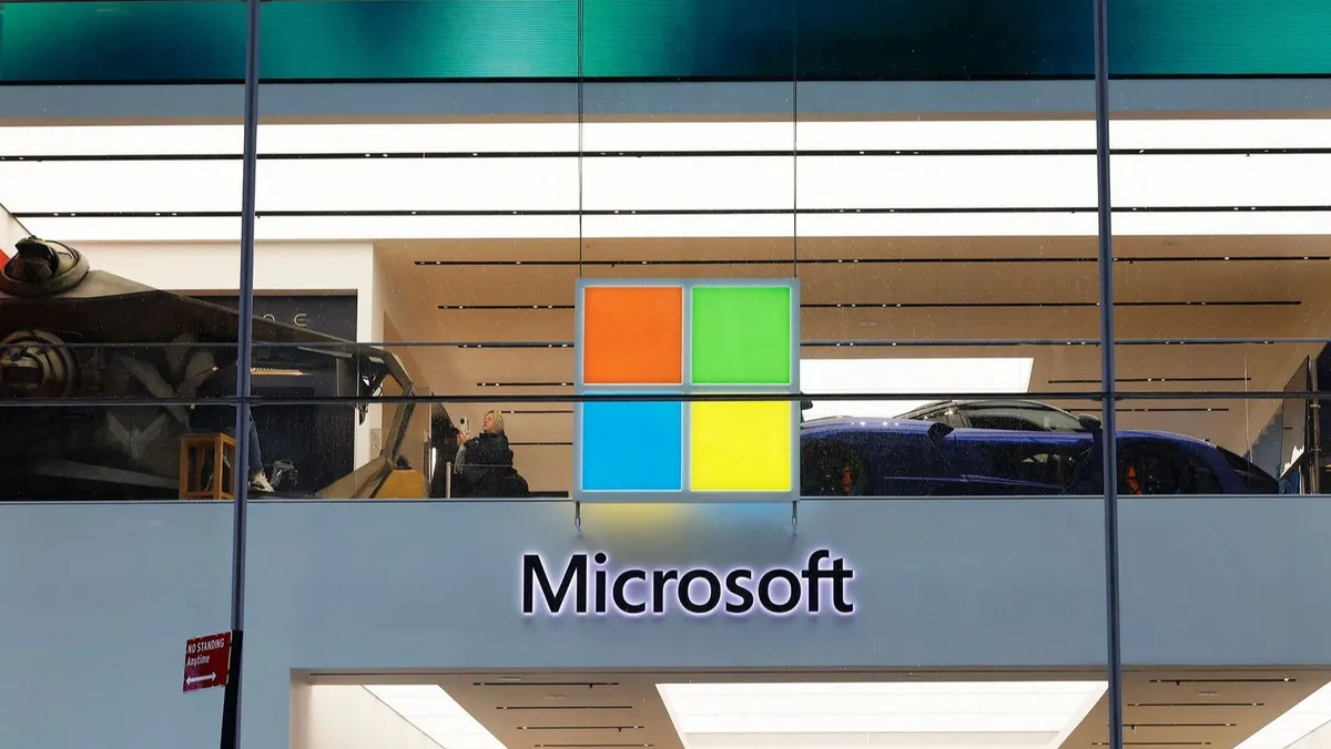 شعار مايكروسوفت التجاري يظهر على أحد متاجرها بمدينة نيويورك الأميركية. 3 أبريل 2024 - AFP - Getty Images via AFP