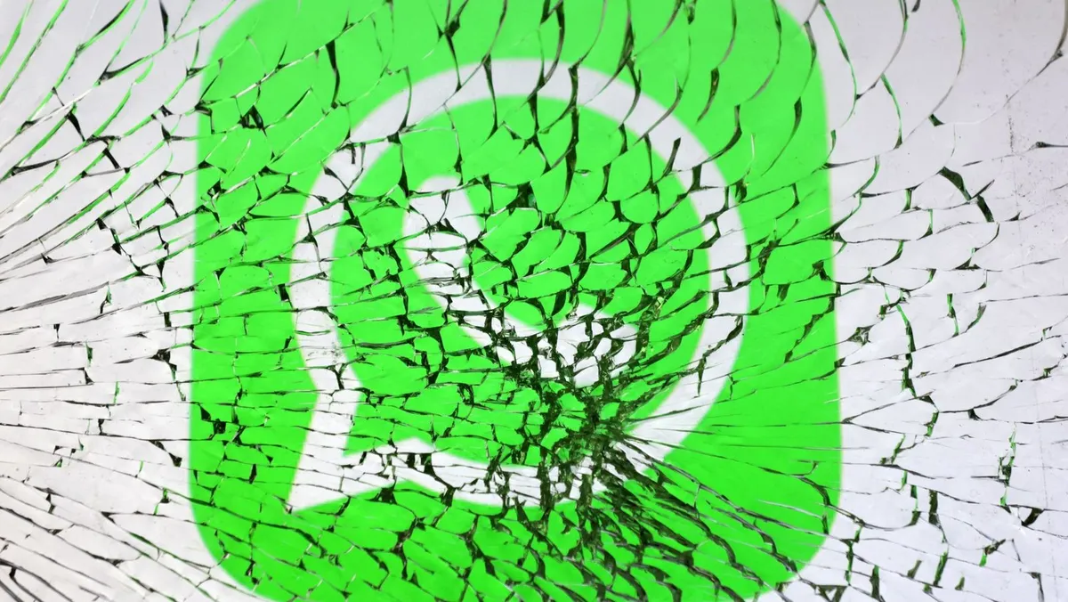 علامة واتساب التجارية تظهر على شاشة مكسورة. - REUTERS