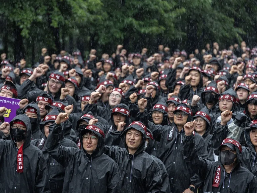 تظاهر آلاف العمال النقابيين في سامسونج، وبدأوا إضراباً سيمتد لثلاثة أيام، مطالبين بزيادة الأجور، وتحسين ظروف العمل، ووفقاً لما نقلته وول ستريت جورنال، فإن الشركة الكورية الجنوبية، أكبر مُصنِّع لرقائق الذاكرة، والهواتف الذكية في العالم، صرحت بأنه لن يكون هناك أي تعطيل فوري للإنتاج.