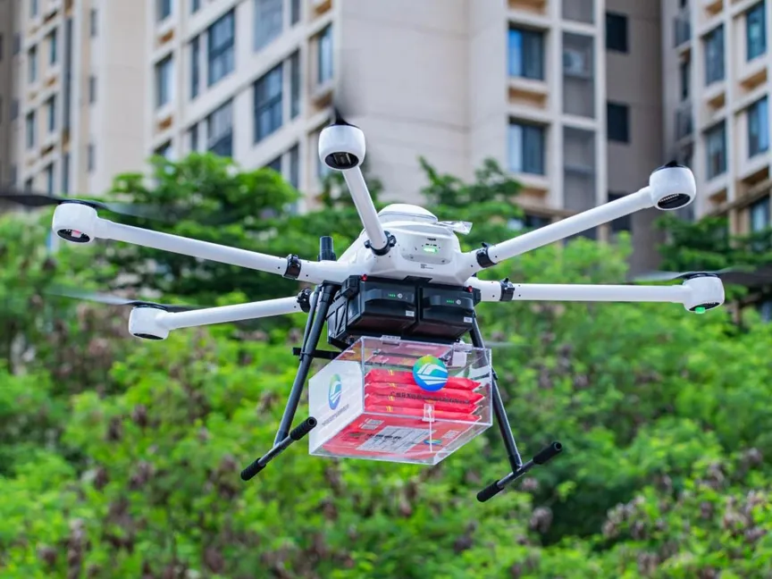 وفي سوق الخدمات اللوجيستية تُعتبر المسيّرات حلاً أسرع وأكثر أماناً للتسليمات قصيرة المدى، ووفقاً لمؤسسة 36Kr، يستغرق تسليم الطرود لمسافة 3 كيلومترات عادة 30 دقيقة بواسطة العامل البشري، في حين تكون الطائرات المسيّرة أسرع بشكل ملحوظ.