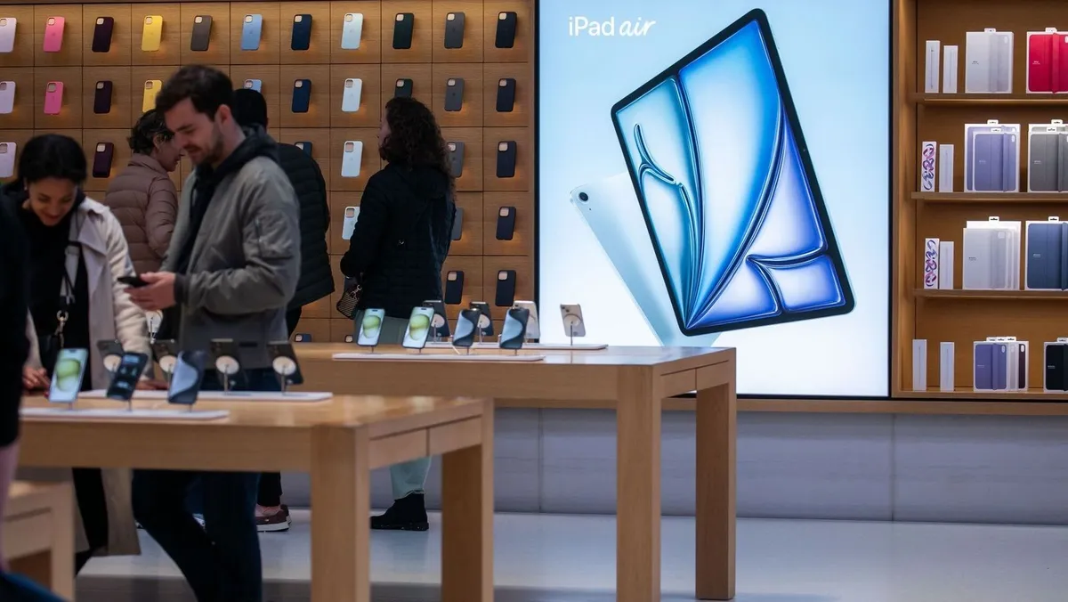أشخاص يتفحصون أجهزة أبل بأحد متاجر الشركة في نيويورك. 15 مايو 2024 - Bloomberg