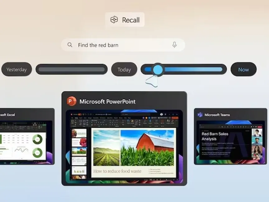 وظهرت Recall كميزة اختيارية في النظام مؤخراً، وهي خاصية تستخدم الذكاء الاصطناعي لأخذ لقطات شاشة لكل ما يراه أو يفعله المستخدم على حاسوبه الذي يعمل بنظام تشغيل ويندوز 11.