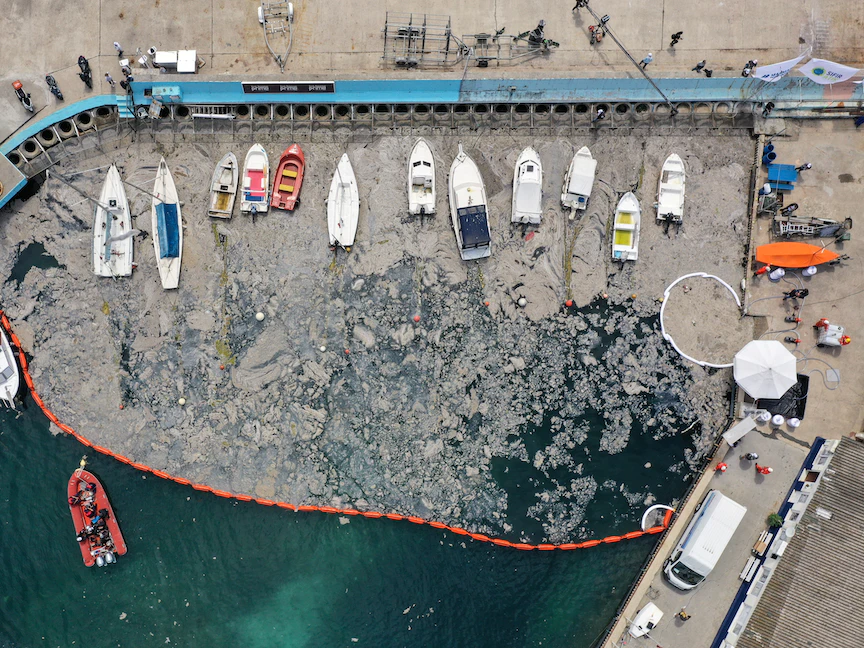 وانتشرت طبقة كثيفة من مادة عضوية لزجة، تعرف أيضاً بصمغ البحر، في البحر جنوبي إسطنبول وغطت موانئ وشواطئ ومساحات من مياه البحر، وغاص بعضها تحت الأمواج مما أدى إلى اختناق الحياة البحرية.