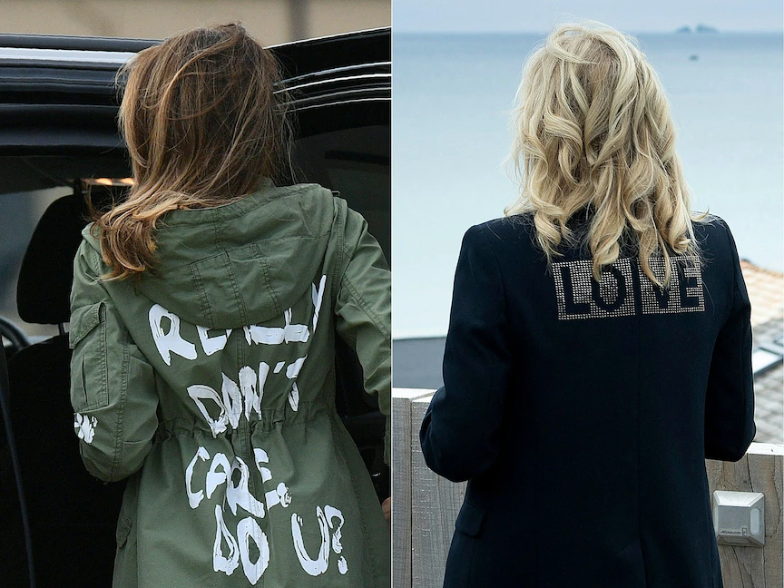وفي عام 2018، ارتدت ميلانيا ترمب أثناء مغادرتها قاعدة "أندروز" الجوية في ماريلاند، سترة خضراء مكتوب عليها ""أنا حقاً لا أهتم، ماذا عنك؟".