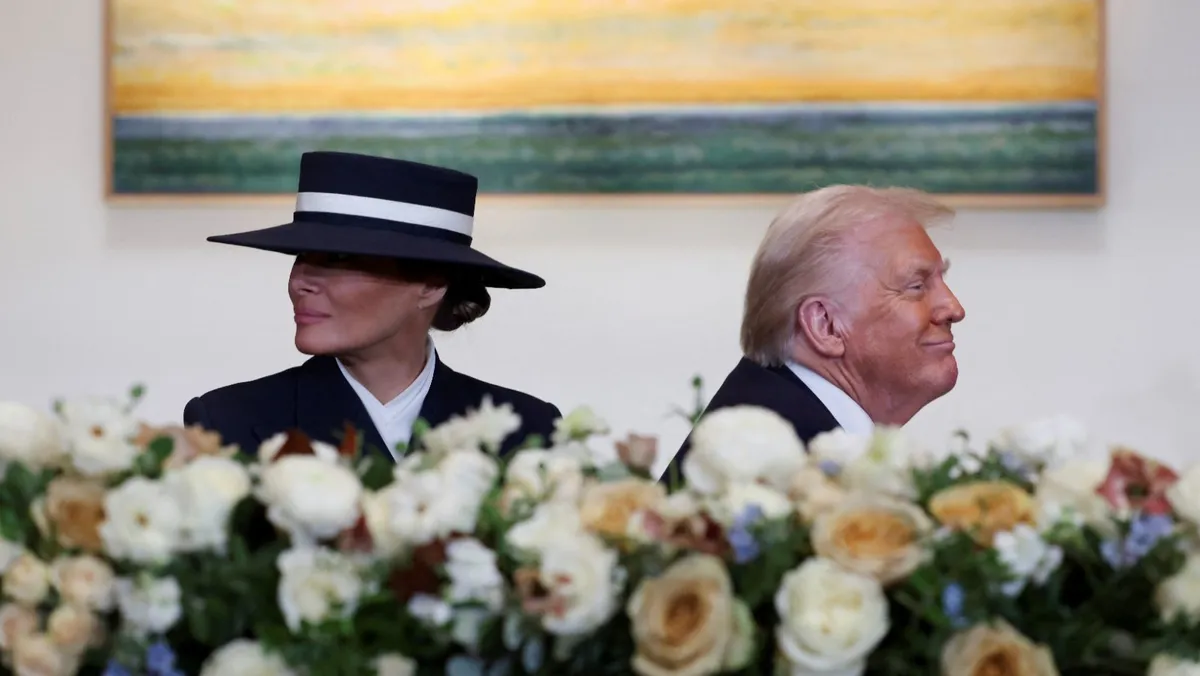 وحظيت تلك اللحظة والقبعة باهتمام واسع النطاق على وسائل التواصل الاجتماعي، وأثنى البعض على إطلالتها، قائلين إن السيدة الأولى بدت أرستقراطية و"مذهلة".