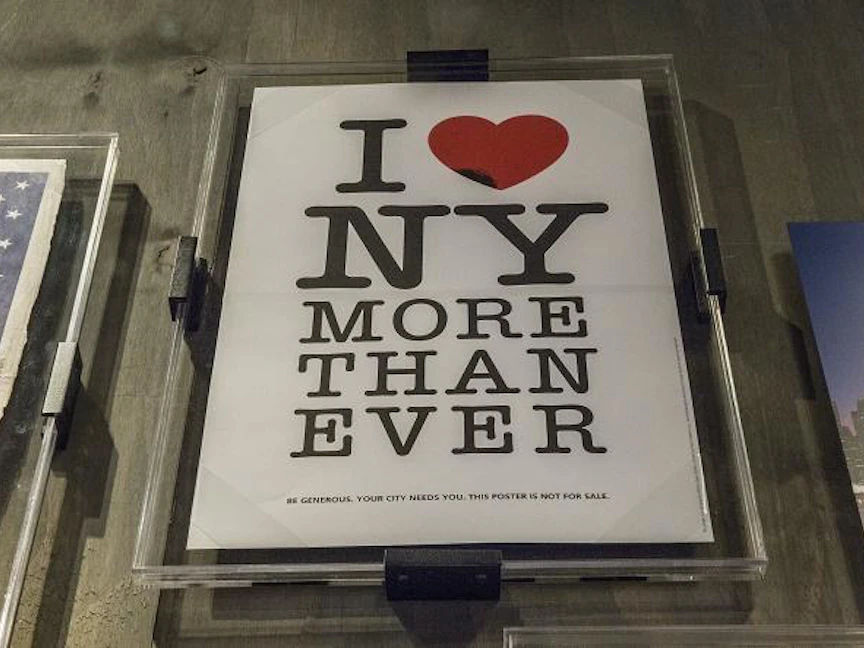 وبعد الهجوم صمم غلاسر نسخة معدلة من التصميم، أضاف فيها "نتوء وإصابة إلى القلب الأحمر الشهير"، ثم عدل العبارة لتُصبح "أنا أحب نيويورك، أكثر من أي وقت مضى"، وفقاً للموقع الرسمي لمتحف ونصب 11 سبتمبر التذكاري.