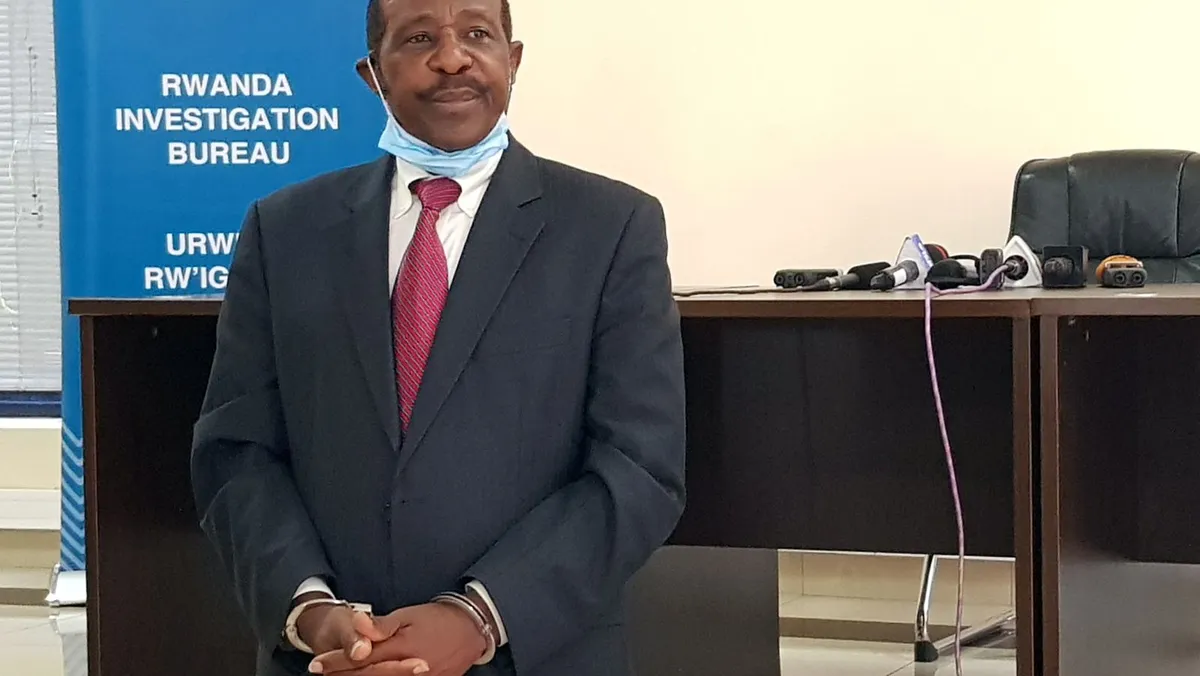 واصطحب اثنان من أفراد الشرطة، الاثنين، روسيساباجينا (66 عاماً) إلى مؤتمر صحافي في مقر مكتب التحقيقات في رواندا، وسمحوا لوسائل الإعلام بتصويره.