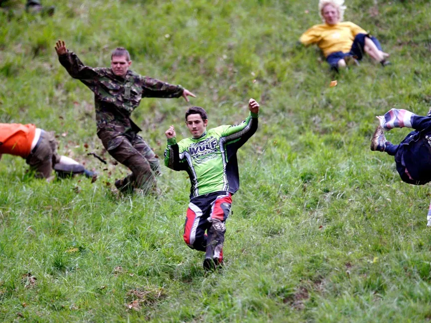 يخوض المئات سنوياً في قرية بروكوورث جنوب غرب إنجلترا سباقاً يوصف بأنه "الأخطر في العالم"، إذ يطاردون قرصاً من جبن "دوبل جلوستر" على تل شديد الانحدار في غياب لعوامل السلامة.