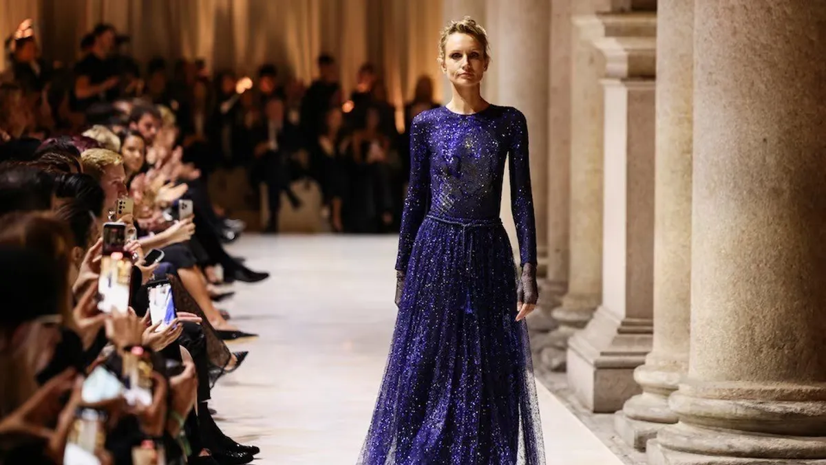 وسار عارضو الأزياء مرتدين تصميمات خفيفة، وبراقة، على أنغام البيانو التي عزفها الموسيقار الإيطالي لودوفيكو إيناودي.
