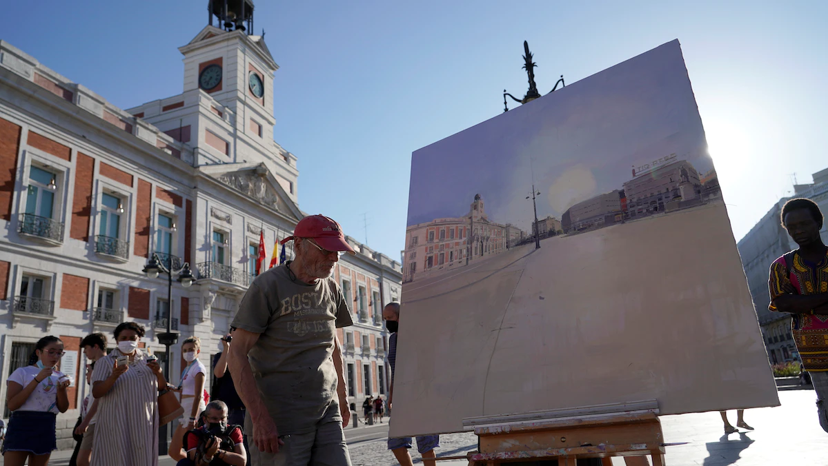 قد لا يتسنى لكثير من الناس مشاهدة فنان كبير وهو يرسم لوحاته أو ينحت أعماله، لكن سكان العاصمة الإسبانية مدريد بات بإمكانهم رؤية أحد أهم فناني إسبانيا وهو يؤدي عمله في الهواء الطلق، بساحة بويرتا ديل سول الشهيرة في مدريد.