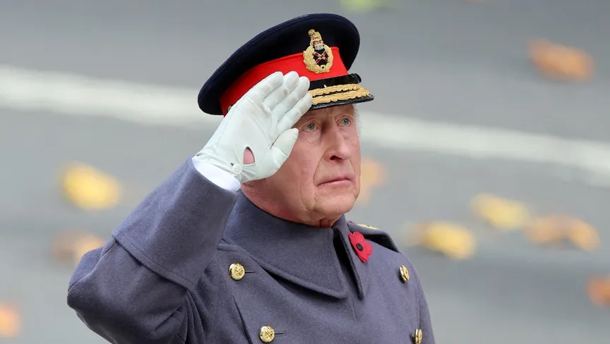 ملك بريطانيا تشارلز الثالث يؤدي التحية أمام النصب التذكاري في لندن. 9 نوفمبر 2025 - Reuters