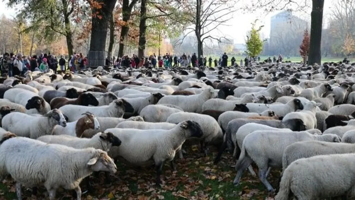 أفسح المارة مدينة نورنبرج في ألمانيا الطريق أمام مئات الخراف الأحد، بينما كانت قطعان من الحيوانات تساق عبر وسط المدينة في طريقها إلى المراعي الشتوية.