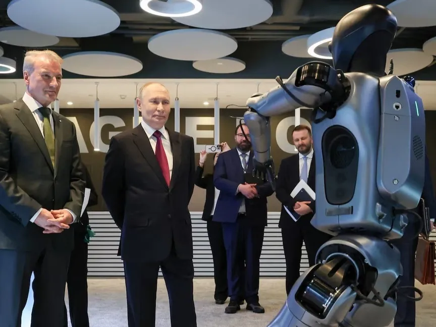 وأظهر العرض، الذي بُث على التلفزيون الرسمي، الرئيس الروسي واقفاً أمام الروبوت الشبيه بالبشر، بينما يشرح له ماهيته قبل أن يبدأ بالرقص على ما قال إنه مقطعه المفضل.