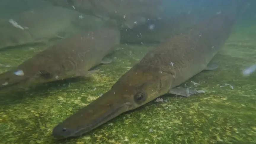 أسماك المانجوارِي المهددة بالانقراض في حوض تكاثر بمحطة استزراع هيدروبيولوجية في مستنقع زاباتا، سيناجا دي زاباتا، كوبا. 19 نوفمبر 2025 - Reuters