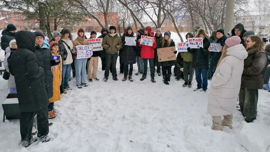 ووفقاً لصور قدمها أحد منظمي الاحتجاج في تومسك، التي تقع على بعد 2900 كيلومتراً شرقي موسكو، تحدى المحتجون انهمار الثلوج، وتجمعوا في حديقة فلاديمير فيسوتسكي رافعين لافتات كتبوا عليها "ارفعوا أيديكم عن روبلوكس" و"روبلوكس ضحية الستار الحديدي الرقمي" و"الحظر والحجب هو كل ما تستطيعون فعله".
