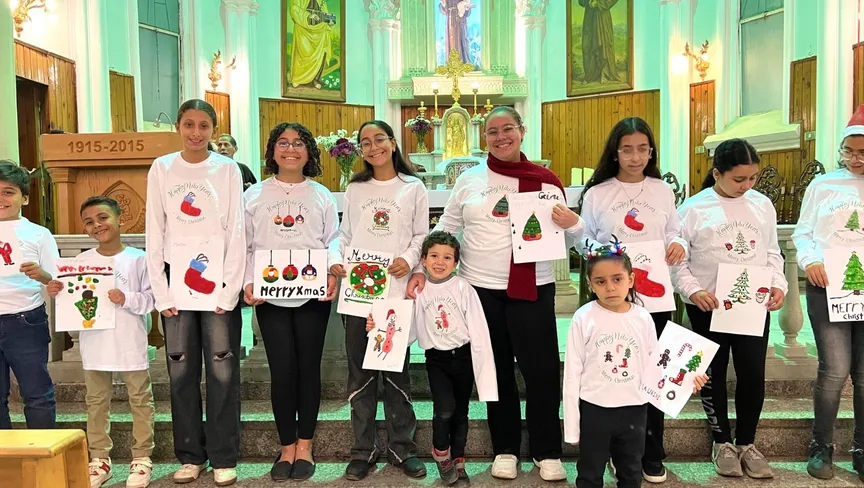 في كنيسة سانت أنطوان بمنطقة الظاهر بالقاهرة، قرر الأطفال الاحتفال بكورال الميلاد بأسلوب جديد غير تقليدي. حيث اجتمع 16 طفلاً من أعمار مختلفة، تراوحت بين 4 إلى 12 عاماً، في فناء الكنيسة بجوار مغارة الميلاد، مرتدين الملابس الخاصة بالعيد لرسم لوحاتهم.