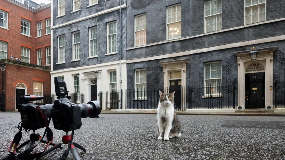 يتجول لاري بحرية، ويتمتع بموهبة خطف الأضواء من قادة العالم عند وصولهم إلى الباب الأسود الشهير في 10 داونينج ستريت.