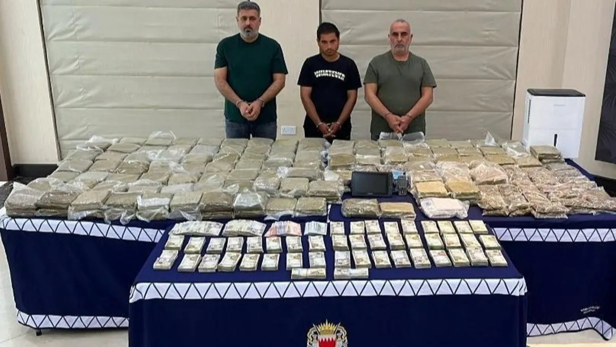 أعلنت وزارة الداخلية البحرينية، مساء السبت، أنها تمكنت من إحباط عملية بيع وترويج ما يزيد على 100 كيلوجرام من مادتي الماريجوانا والحشيش المخدرتين، والقبض على 3 متهمين، موضحةً أن "أعمال التهريب كانت تتم من إيران".