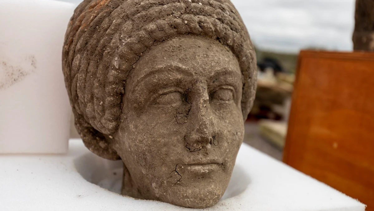 رأس تمثال أثري لامرأة رومانية تم اكتشافه خلال العمل في مشروع خط قطار في ستوك مانديفيل شمال غربي لندن - 29 أكتوبر 2021 - hs2.org.uk